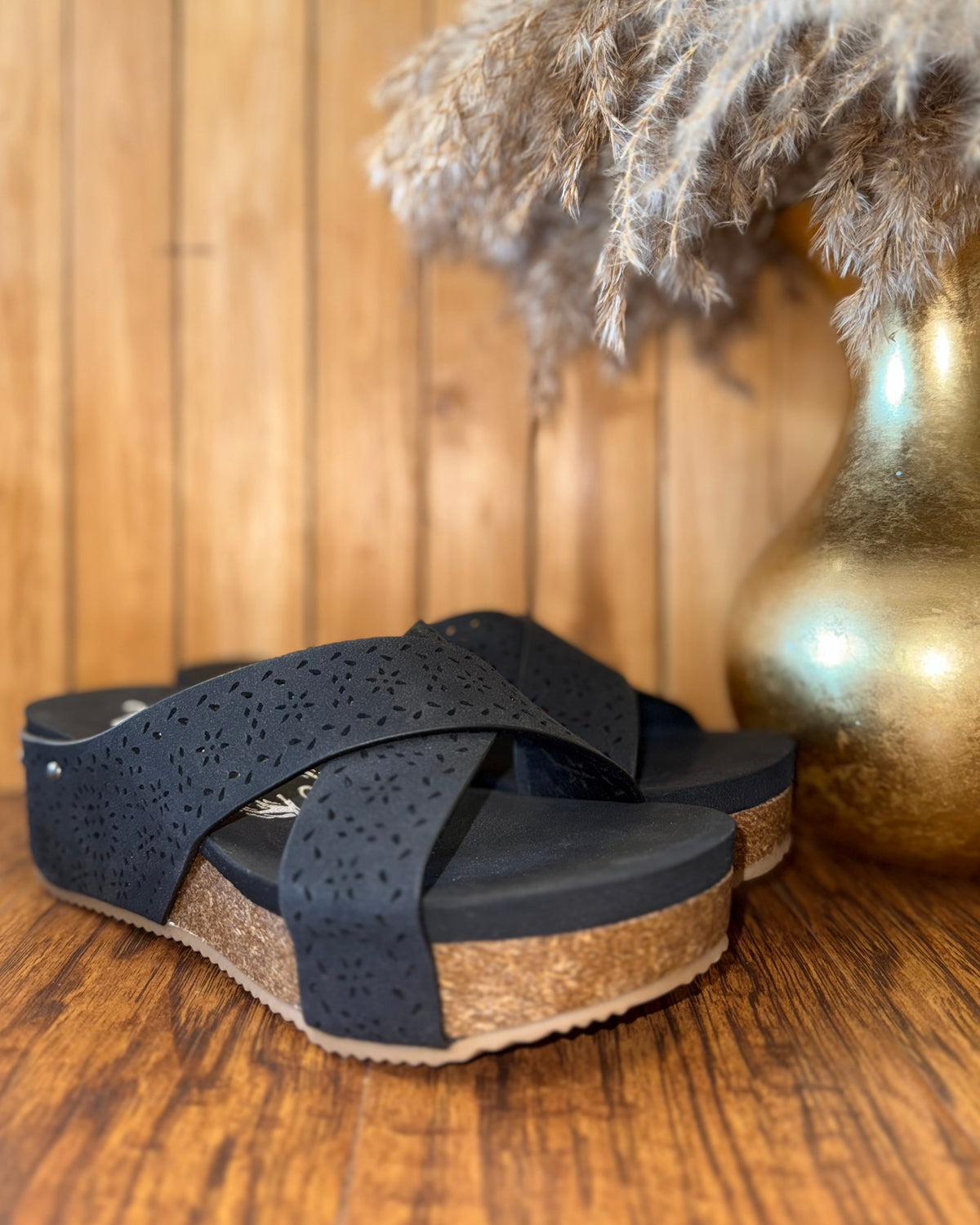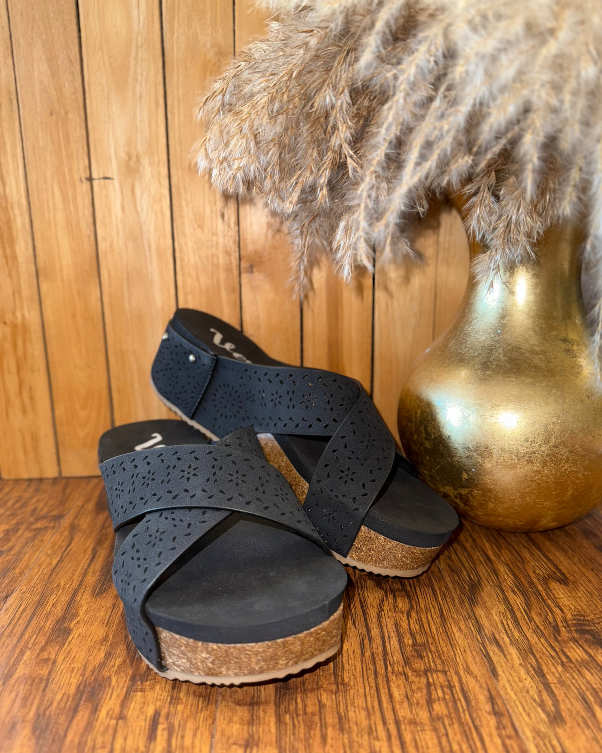 Step into effortless style with the Very G Women's Black Suede Floral Capri Wedge Sandal. Designed for both comfort and charm, these sandals feature soft black suede with delicate floral cutouts for a feminine touch. The cushioned footbed ensures all-day wearability, while the wedge heel adds just the right amount of lift. Perfect for brunch dates, weekend getaways, or casual outings, these sandals bring a fresh and feminine vibe to any outfit.