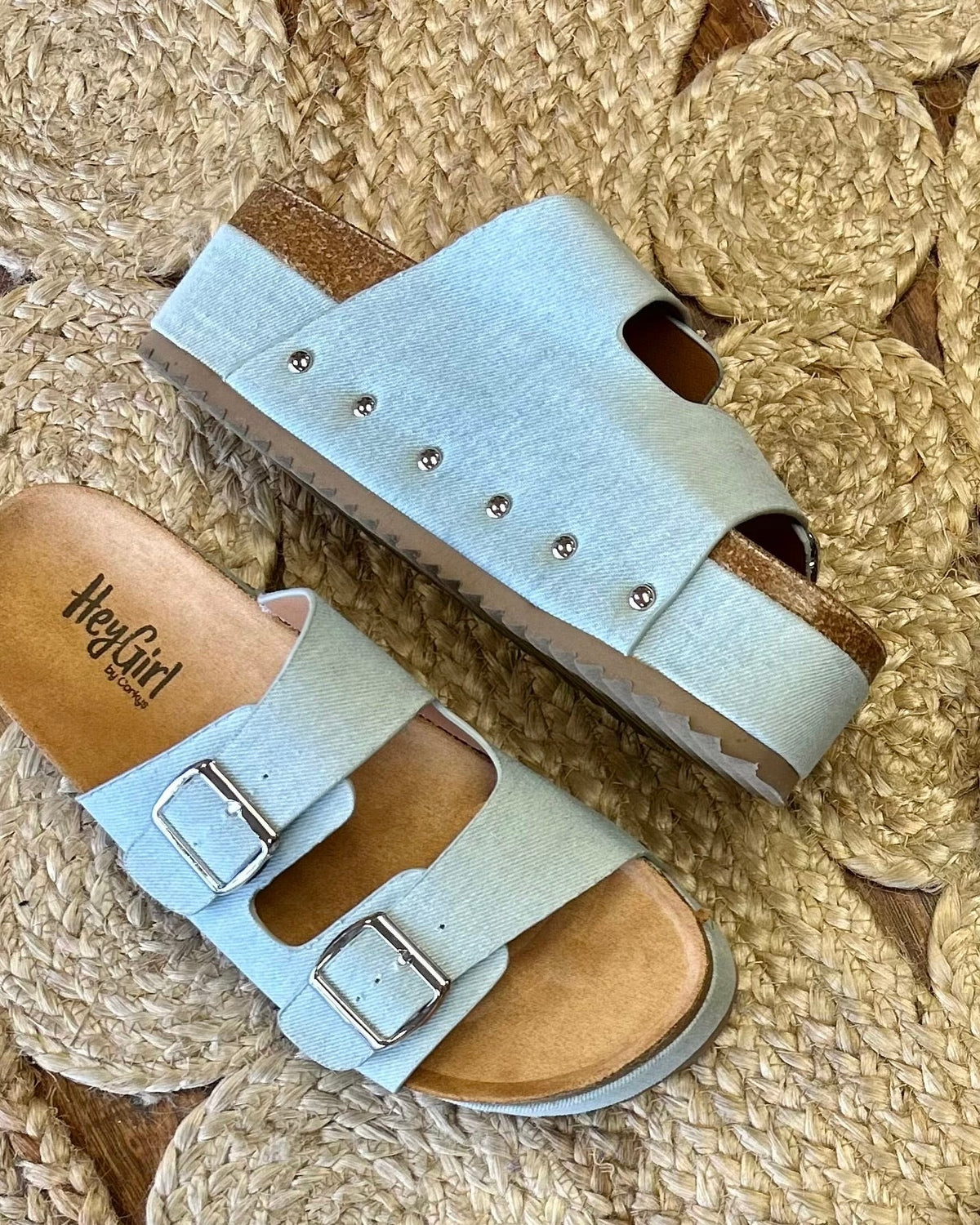 The best selling sandal of all time is back! Platform corked bottom, metal stud details and adjustable straps make these a go to favorite. True to size. If between sizes, you can honestly go up or down with the adjustable straps.