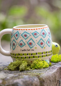 Our hand-sculpted Folk Art Mug will cheerfully greet you in the morning to start your day with a smile. The encouraging mini messages peep out at you from just under the rim. While they do an awesome job at holding coffee, tea, or even the occasional serving of cereal, their talents don’t stop there. Perch one on your shelf to hold a handful of wildflowers from your garden or plant a succulent to set beside your kitchen sink. Let the happiness spill onto your desk as a pen, pencil, or binder clip holder. Pop a mug into one of our small Happy Bags and you have a thoughtful gift for anyone! Keeping a few in your gift closet would be a great idea (but only if you can resist using them all for yourself)!