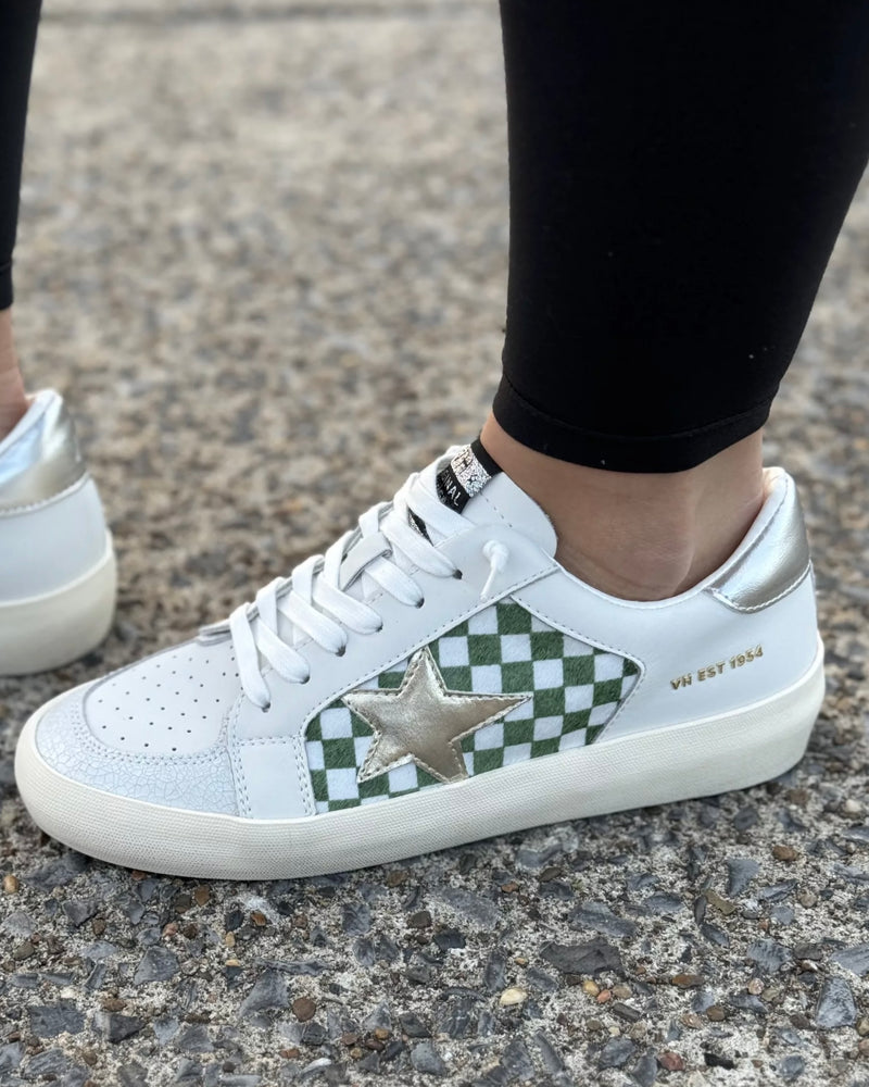 Crafted with a blend of synthetic, leather, and suede materials, these Nicolette shoes in striking green/white natural checkered pattern offer effortless style with convenient slip-on design. No laces to tie means quick on-and-off wear, while the signature traction outsole provides reliable grip. True-to-size fit ensures comfort right out of the box.
